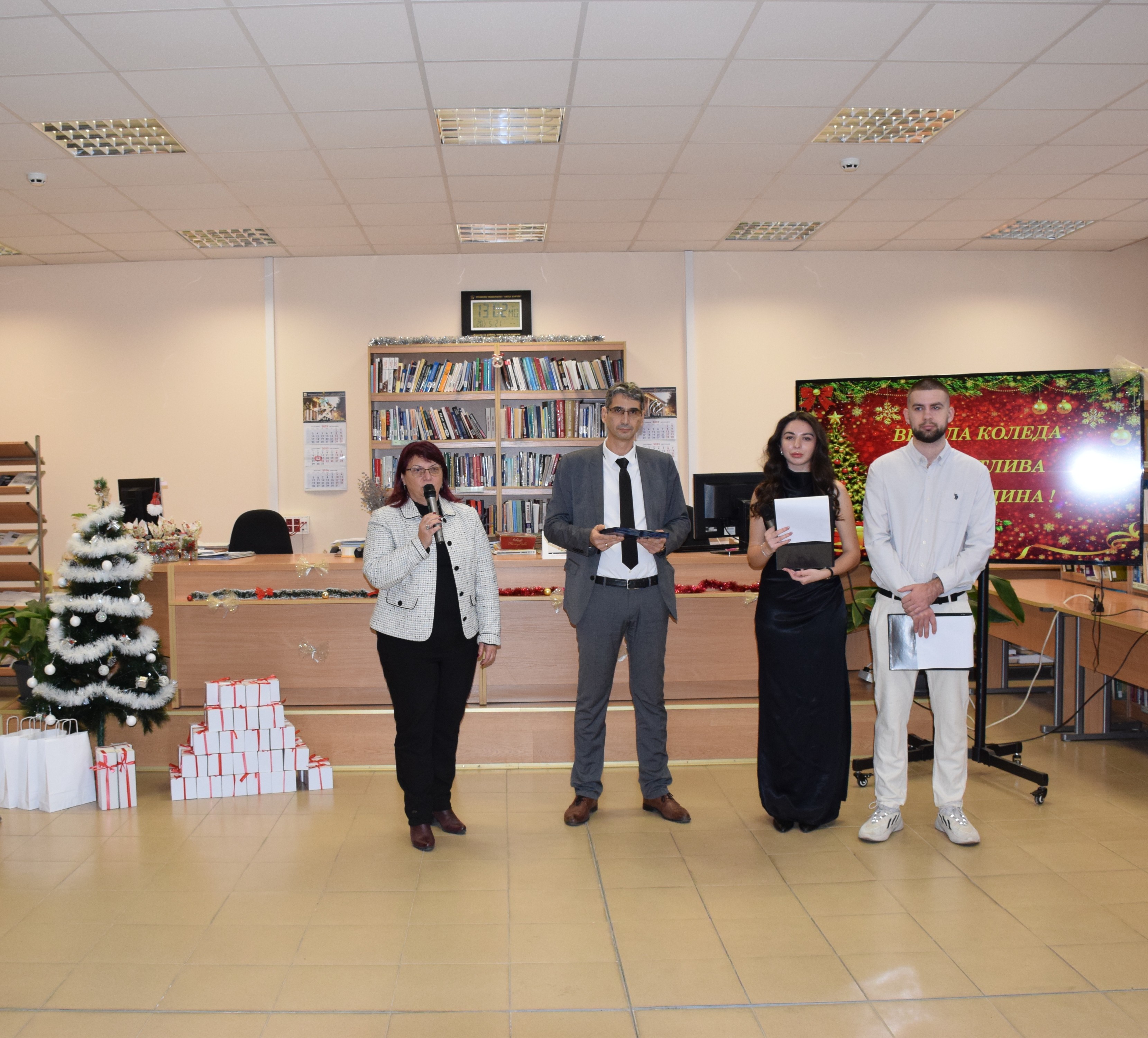 Today, December 17th , 2025, a Christmas party was held in the reading room of the library of the university of Ruse for foreign students studying at Ruse Alma Mater. It was organized by the Foreign Students Department and dedicated to the traditions of Christmas celebrations in Bulgaria.